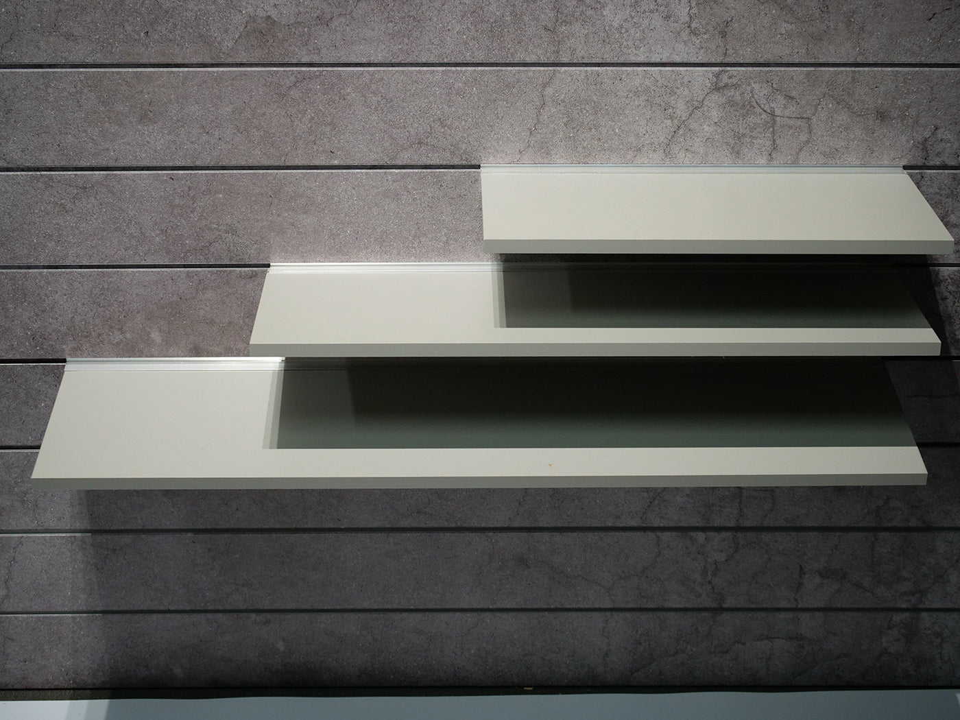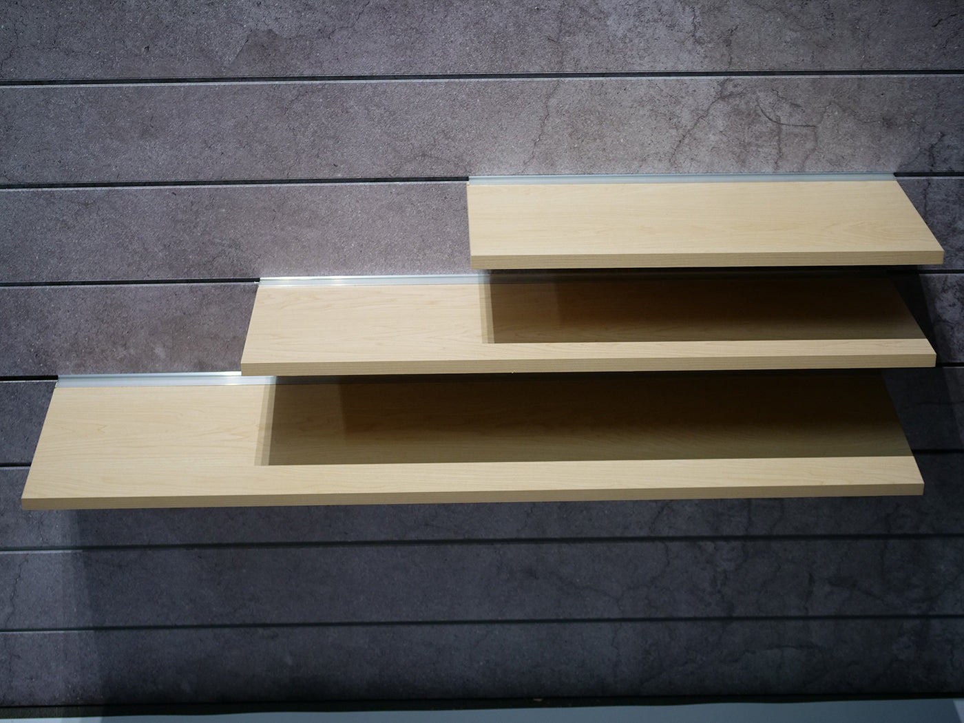 Magic Shelves use a special bracket to “float” in front of your slatwall panels. Meant to highlight and display lightweight objects.