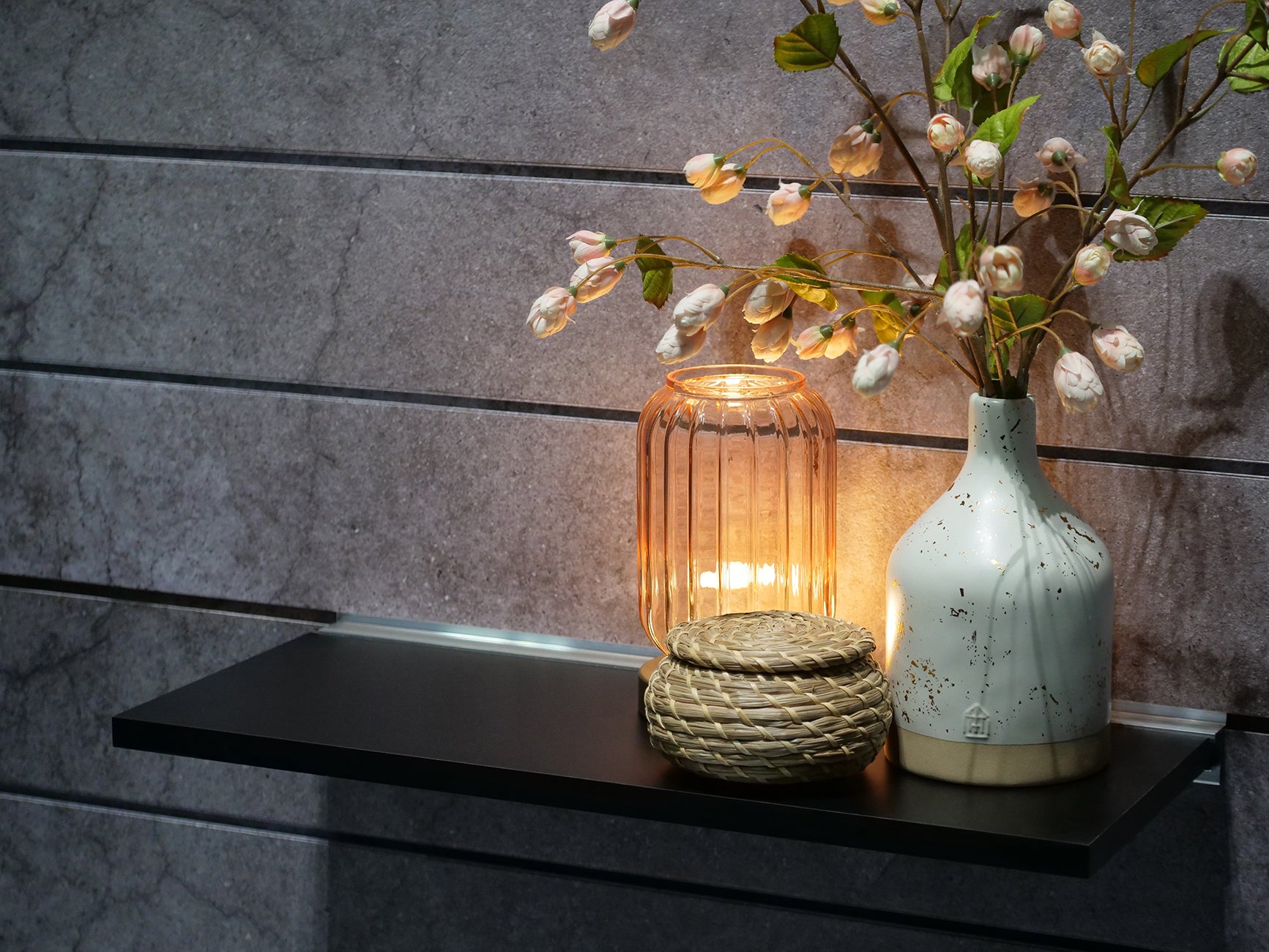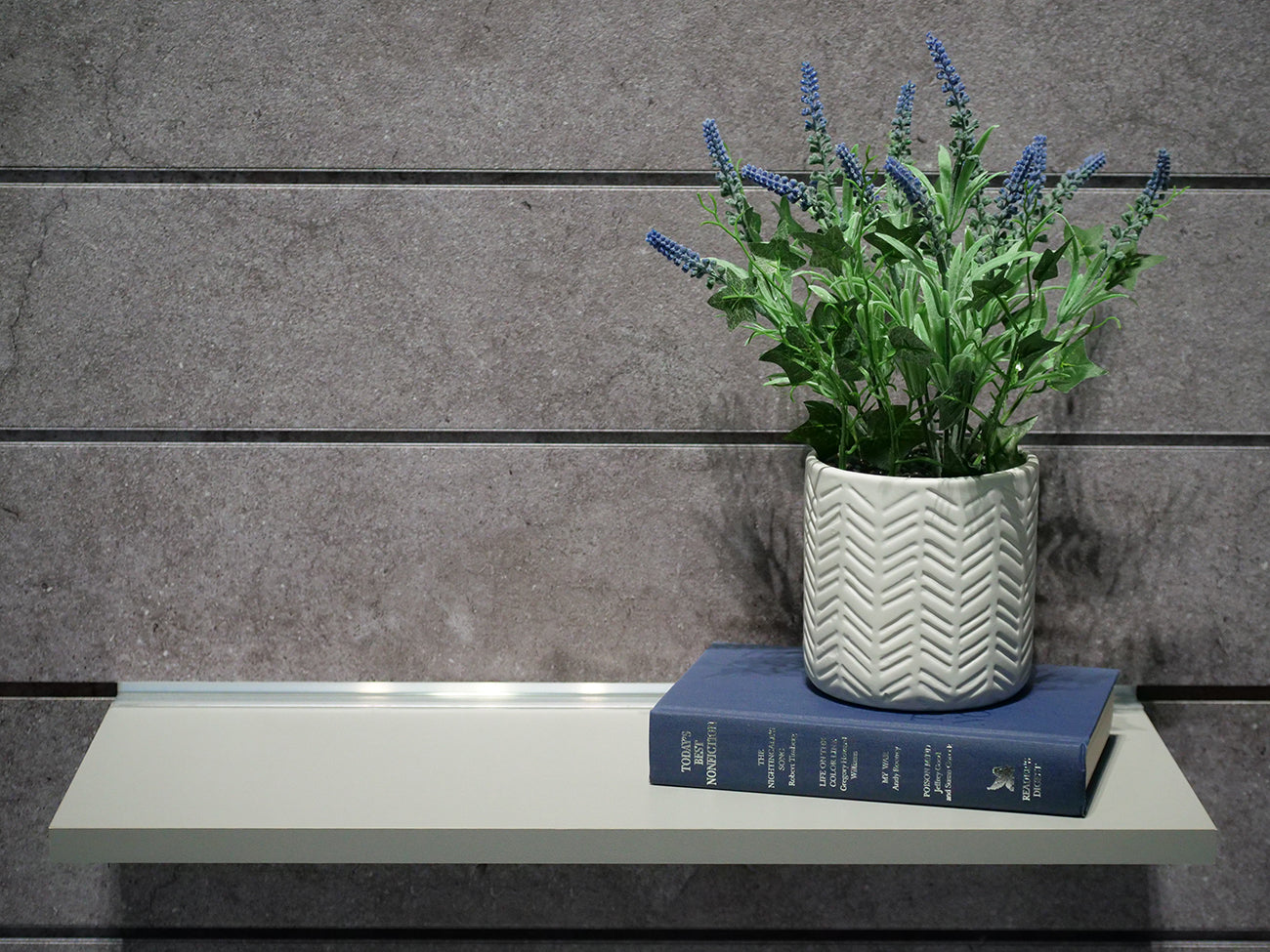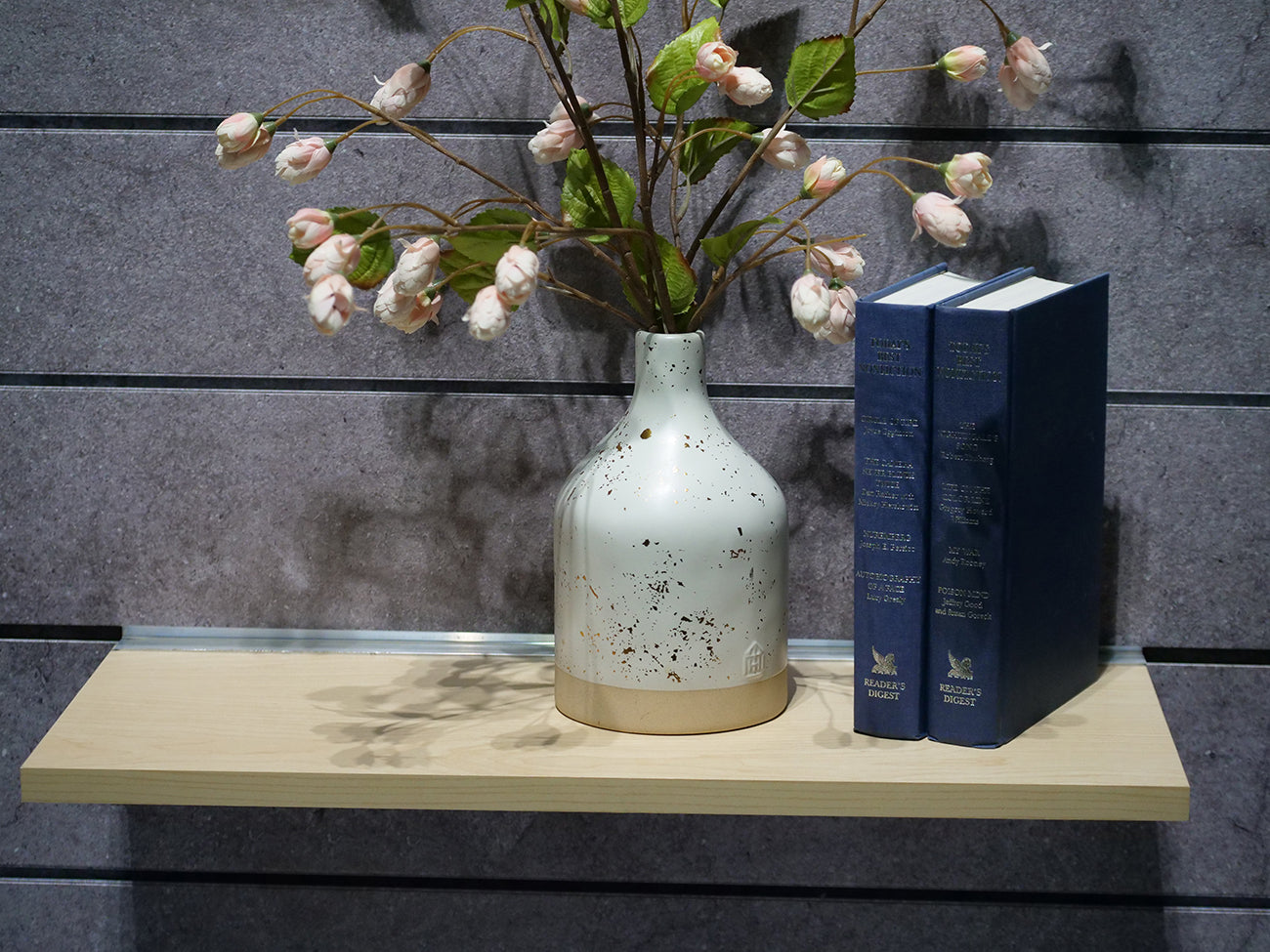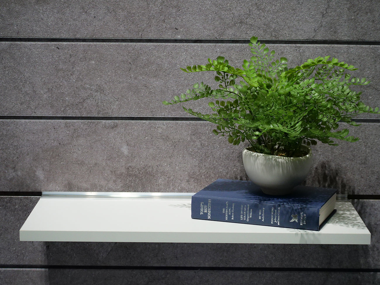 Magic Shelves use a special bracket to “float” in front of your slatwall panels. Meant to highlight and display lightweight objects.